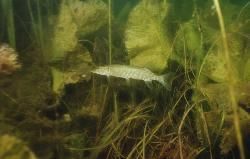 Laacher See auf 10m, ein junger Hecht im Tarnkleid.