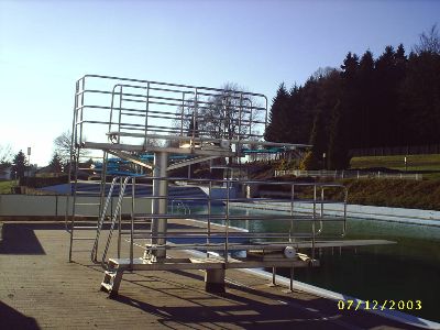 Die Sprungtürme sind aus Edelstahl und sind mit einem spezielen Konservierungsmittel bearbeitet worden.